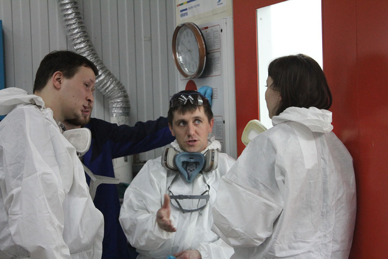 Непосредственно в МКЦ маляры выполняют практическое задание по нанесению сложного трехстадийного покрытия.